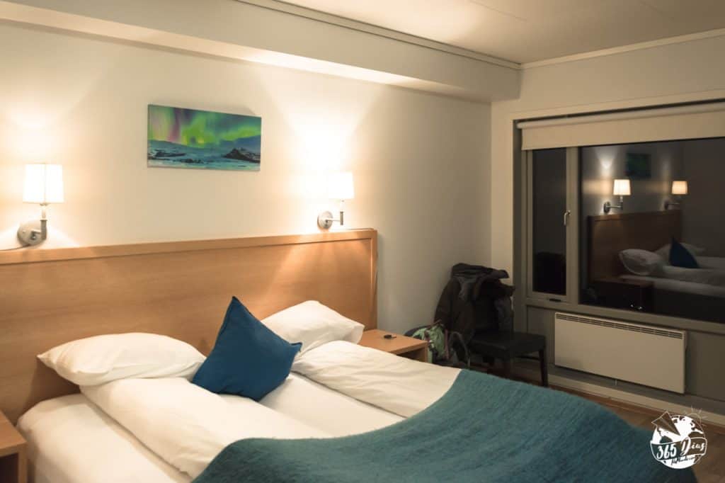 Fosshotel Núpar: fica entre Skaftafell e o Canhão Fjaðrárgljúfur. Enquanto hotel é simples, mas suficiente, fica no meio de um campo de lava. O quarto tinha casa de banho privada, com grandes janelas e um alpendre com vista para os campos.