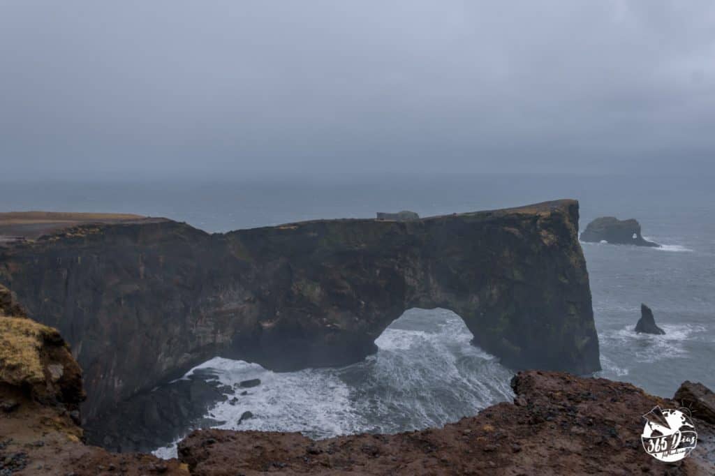 Dyrhólaey: fica junto a Vík. Trata-se de uma península com um farol. Chovia horrores, o vento era intenso, e, se há momento em que tivemos medo de ser arrastados perigosamente, foi aqui. De origem vulcânica, já foi conhecida como a ilha Door Hill (algo como a porta da colina), hoje está ligada à ilha principal. É o ponto mais a sul do país e faz parte da Ring Road, sendo uma atração turística. A grande atração é o arco rochoso, grande o suficiente para que um piloto de ultraleve conseguisse atravessá-lo em 1993.