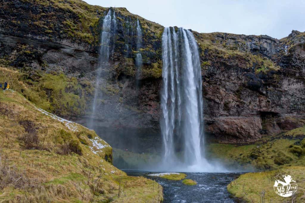 Seljalandsfoss: nos nossos relatos temos falado de várias cascatas, mas esta é diferente. A água cai de uma altura de 60 metros, mas aqui temos a possibilidade de a contornar, passando por trás da queda de água. Há um percurso circular, fácil, mas que se pode tornar escorregadio se houver um grande fluxo de visitantes.